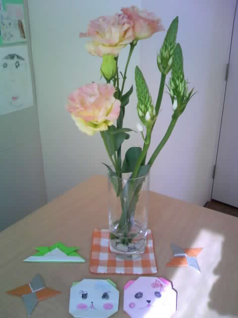 【今週の花。 女の子が、かわいい折り紙を折ってくれました